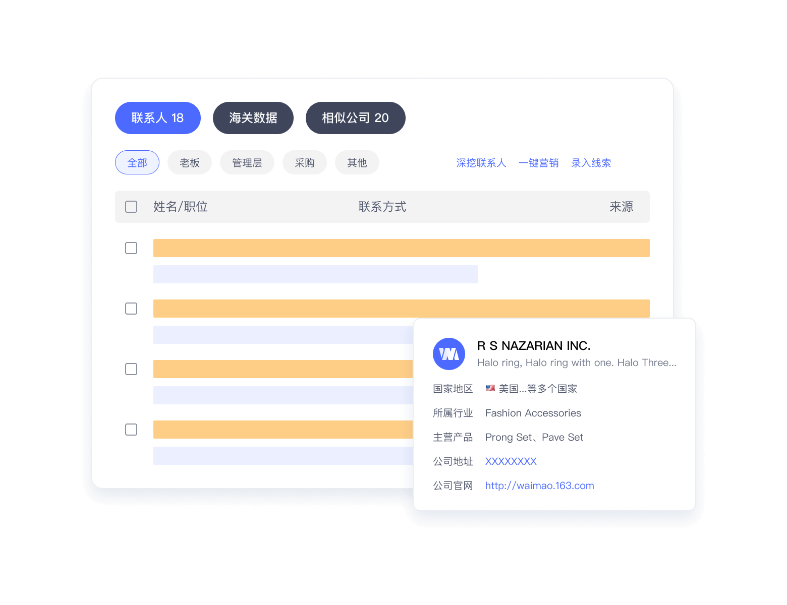 和搜索偏好,智能推荐相似客户,自动获取更多商机