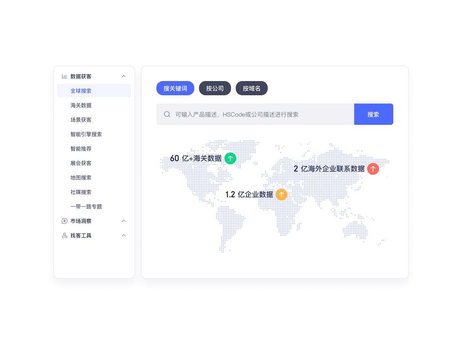 60亿+海关数据,1.2亿企业数据,2亿+海外企业联系数据,覆盖全球
