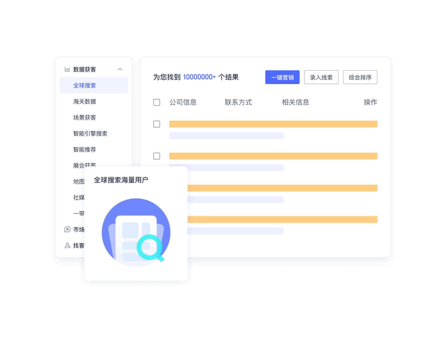 涵盖全球搜索、海关数据、社交平台、谷歌地图、搜索引擎、展会数据等