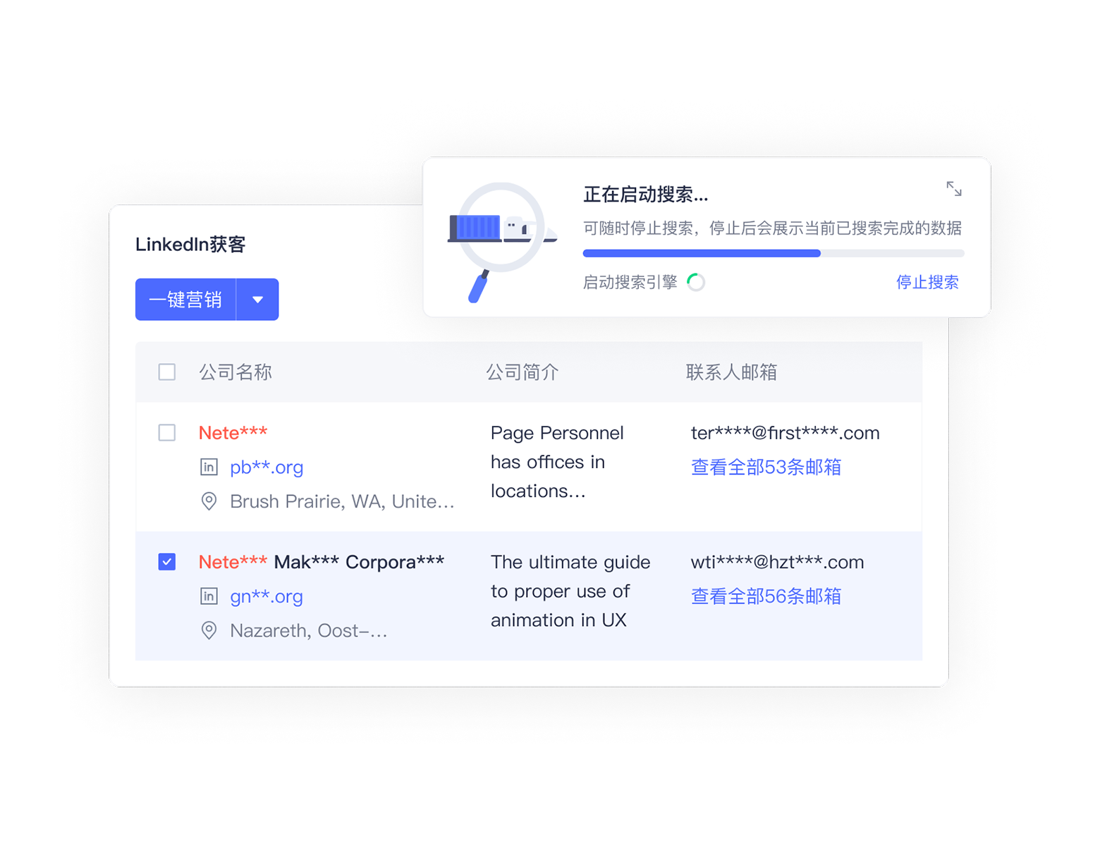 企业核心员工电话、邮箱、社媒信息一览无疑,一键群发效率高又快。
