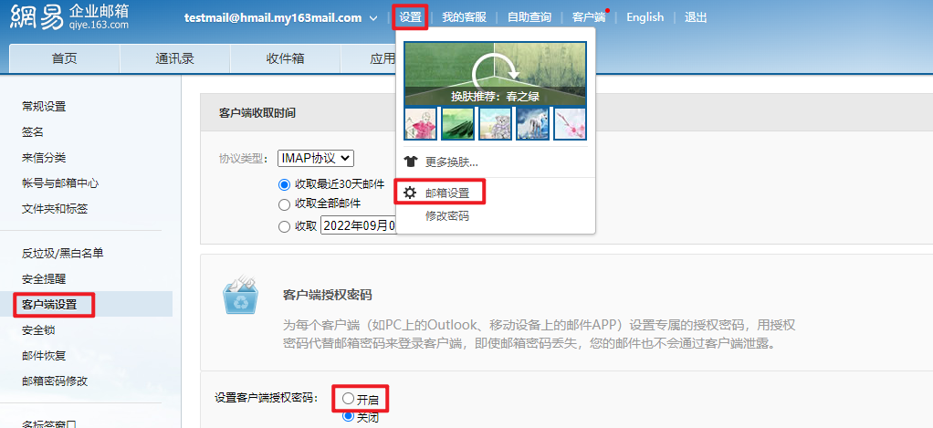 注意:如果帐号启用了客户端授权码,则需要使用客户端授权码作为密码登录