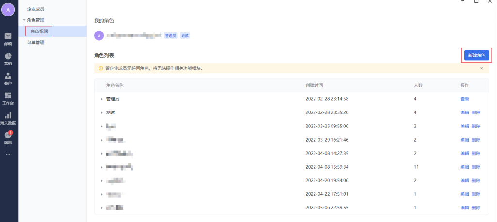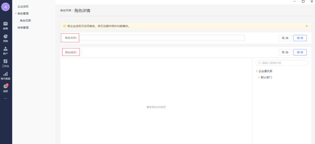 可以新建不同的角色名称,添加不同的成员进入本角色