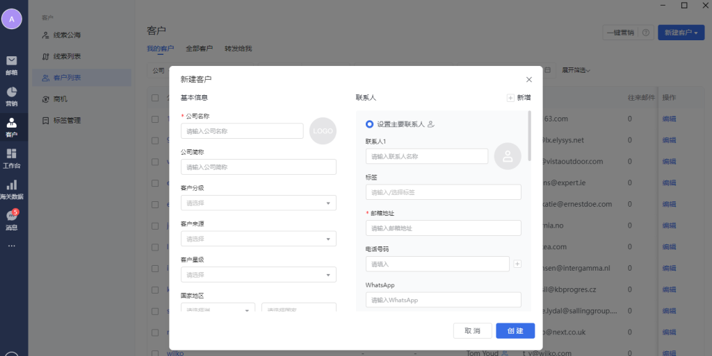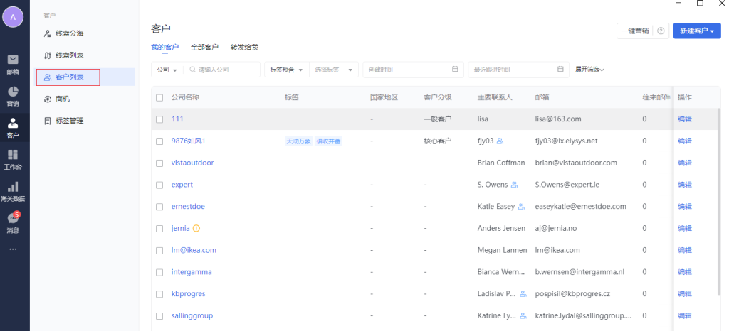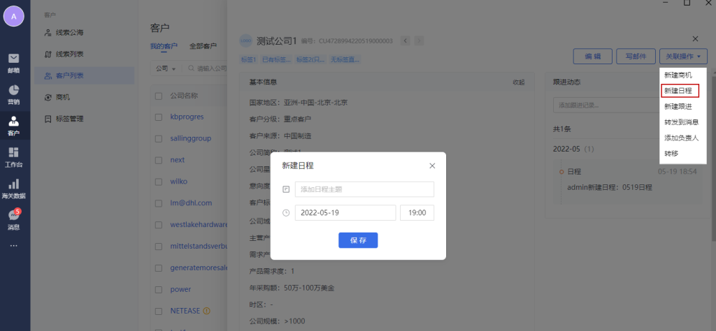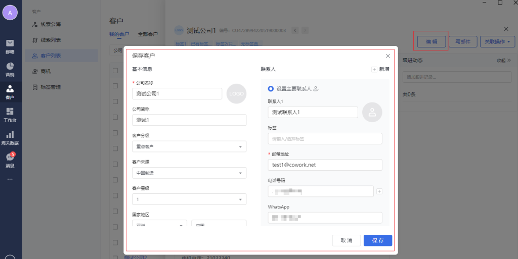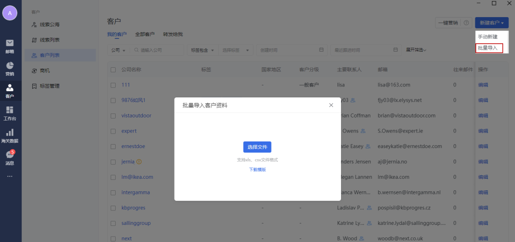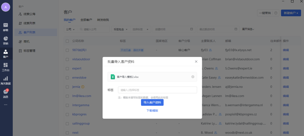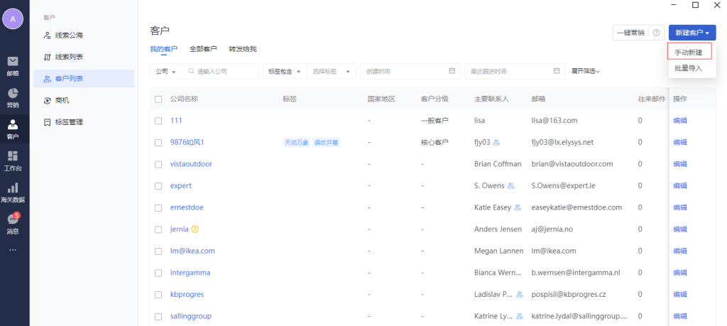 客户管理模块,可以管理外贸相关客户数据。