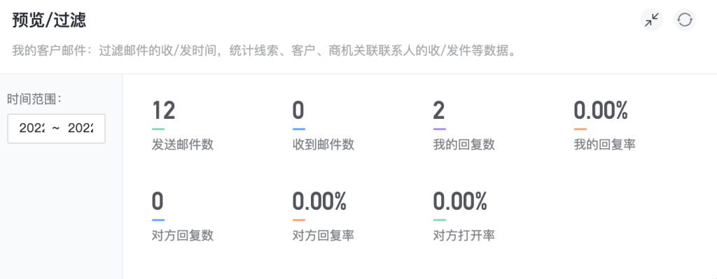 -时间范围过滤:邮件的收/发时间-关联数据:客户关联的邮件数据